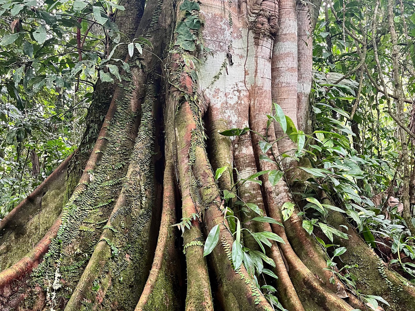 A place renowned worldwide for its biodiversity, its atmospheric rivers of flying water, its spectacular flora and fauna, among other things, is also home to perverse industrial exploitation, the violation of Indigenous health and sovereignty, sky-high cancer rates, and miles of polluting plantations. And I continued to struggle with this paradox throughout our excursion, questioning what the reality is for countries in the Global South under capitalism, where there seems to be little choice but to extract from and poison themselves and their land for a chance at survival.
